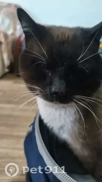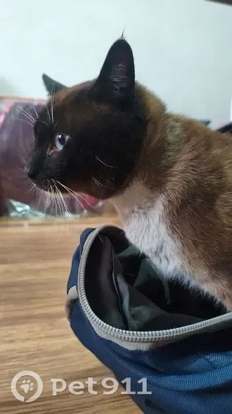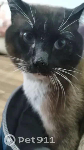 Tenia mucha hambre al llegar a casa. Parece un cruza de siamés. Tenia un collar puesto. Busco al dueño y que me indique el color del collar para poder entregarlo