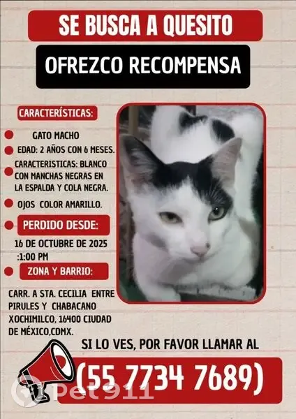 Animales perdidos , foto: Se Busca: Gato Blanco y Negro Perdido en CDMX