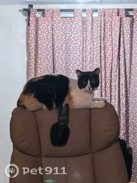 Gatita dócil y hogareña de 5 años de edad. Color blanco, negro y naranja (cálico), su maullido es muy agudo y no es muy grande. Desapareció hacia las 2:30 pm y no sabemos cómo.