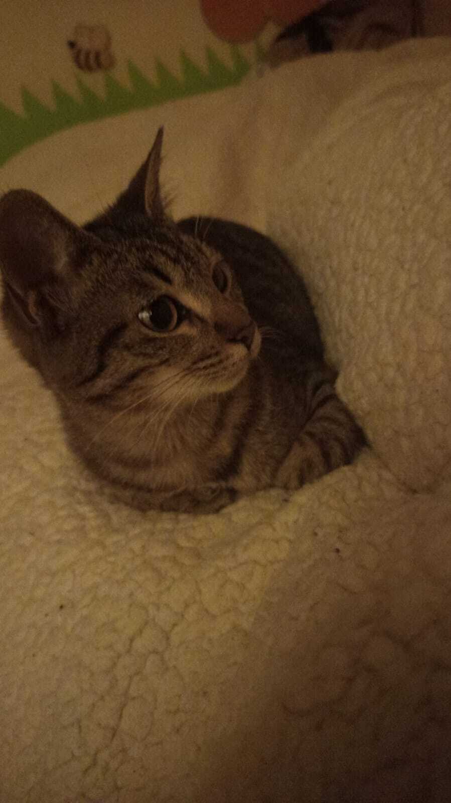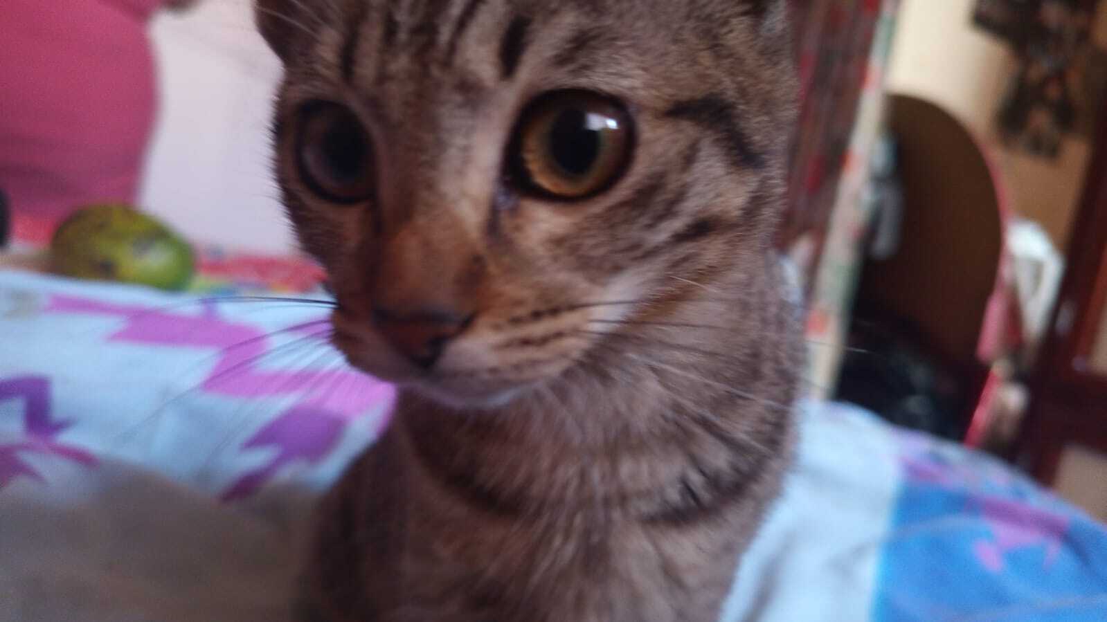 Se llama churrumaiz o Lázara, tiene 1 o 2 años de edad, a veces no se deja agarrar, es hembra y posiblemente este embarazada o no, se perdió hace 1 semana y días