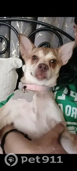 Color café claro, patitas, pecho y cara blancas, ojos color miel, tamaño pequeño, consigo trae una placa donde dice su nombre y número telefónico, ella tiene un tic en su patita, la cual está constantemente moviendo. Desapareció tras salirse de su hogar y ya no regresar