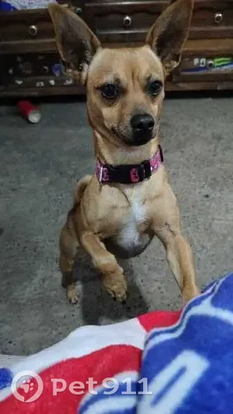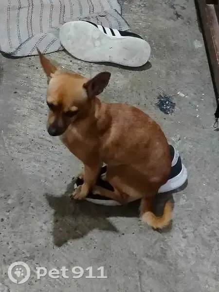 Color cafe claro con una manchita en su lomo mas clarita tipo lonar y una cicatriz en una de sus patitas traceras no le gusta sentarce directamente en el suelo