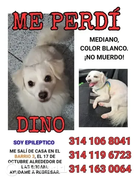 Perros perdidos, Manzanillo, foto: ¡Ayuda! Perro Blanco Perdido en Manzanillo
