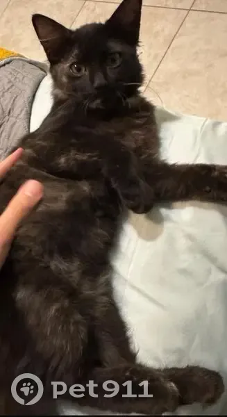 Es de color negrito pero con destellos naranjas tiene en una patitos delantera y otra trasera motora blanca, en su hocico tiene blanco también muy difuminado, trae un collar rosa con fresas sin placa , dime su cola esponjosa , no sale de casa , tiene 5 meses , no está esterilizada aún, es tímida y le dan miedo los ladridos de perros se salió aproximadamente a las 8:30pm de ayer lunes 27 de octubre del 2025 , la hemos buscado en la zona desde las 11:30 pm que nos dimos cuenta que no estaba en casa , no sabemos por dónde salió y ya buscamos en toda la casa
