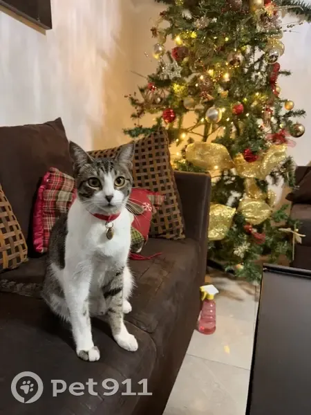 Salió de casa. Lleva un collar rojo con su nombre y nuestro número de teléfono. Es muy tranquilo, casi no maúlla.