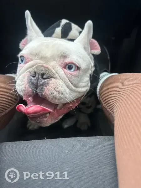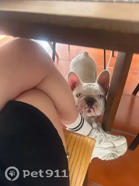 Perlina es una perrita tipo bulldog francés, color blanco/crema con ojos azules muy llamativos. Tiene nariz con manchitas oscuras y piel rosita en algunas zonas. Es de tamaño pequeño-mediano, pesa aproximadamente 12 kg. Sus orejitas son grandes y siempre están paradas. Es muy cariñosa, juguetona y confiada con las personas. Se salió de la casa sin que nos diéramos cuenta; la señora del aseo no notó cuando se escapó y al llegar nosotros comenzamos a buscarla. Por favor, si la ves o alguien la tiene resguardada, ayúdanos a que regrese a casa