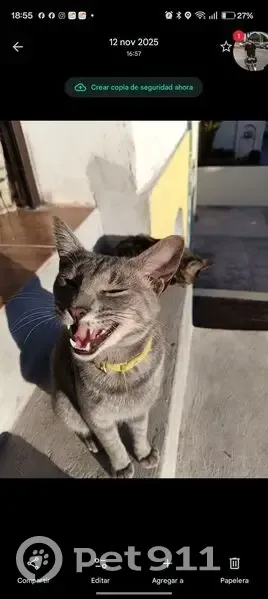 Gatos perdidos, , foto: Gato Gris Perdido con Collar Amarillo