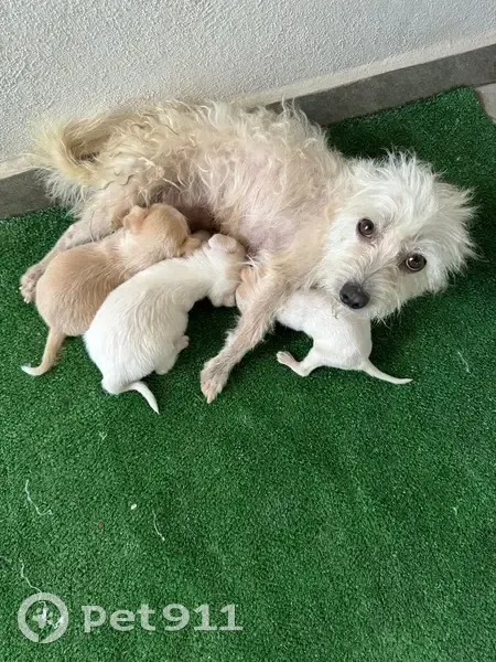 Es color blanca con unas pequeñas manchas color cafés, es muy tímida se asusta con los ruidos fuertes, pero en estos momentos se tisno de gris carbón por meterse debajo de un carro, ella siguió a un familiar y sin darse cuenta subió al camión y la bajaron del camión en Santander de la Bobadilla.