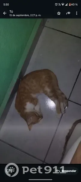 Gatito naranja con manchas blancas, mide alrededor de 32 cm sentadito, tiene 6 meses, se perdió por la colonia ampliación Rodríguez, se llama Simba y la última vez que lo vimos fue el martes 2 de diciembre a las 7 de la mañana