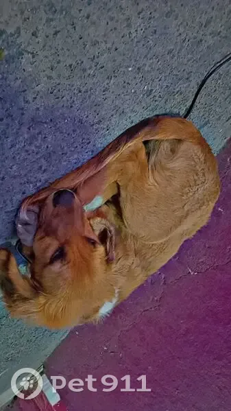 Encontre a este cachorro arribá de la estacion de mexibus es color amarillo tiene una mancha blanca en su lomo y las patitas ligerámente blanquitás también tiene un collár negro y es un perrito muy noblé tiene aproximadaménte unos 3 mesés