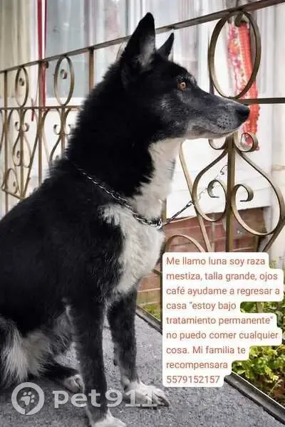 Talla grande , Pelo negro grueso , pecho blanco y puntas de las patitas blancas , ojos café ámbar , orejas puntiagudas, soy dócil y me gusta aullar , muy alegre y tímida
