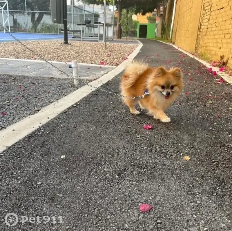 Es un pomerania raza pequeña, es un macho, color café clarito con su pecho color blanquito, se perdió porque se salió de mi casa, se hecho a correr, no traía collar cuando se perdió.