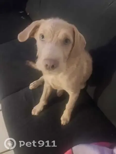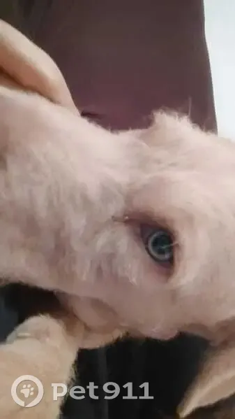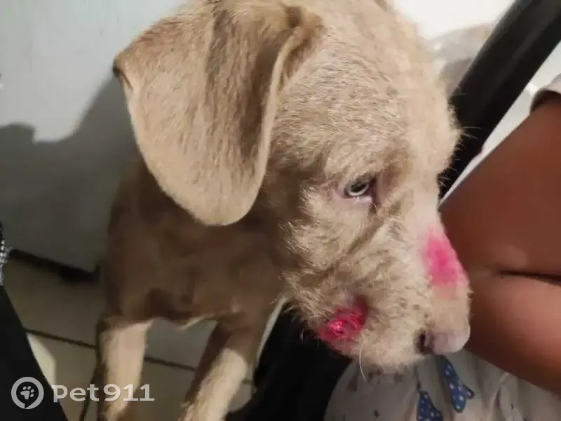 Perrito color blanco, tiene los ojos claritos (como una mezcla de amarillo y azul, pero parece grises). Sus orejas son medianamente largas, tiene lunares azules en la boca y una pequeña costra en la oreja.